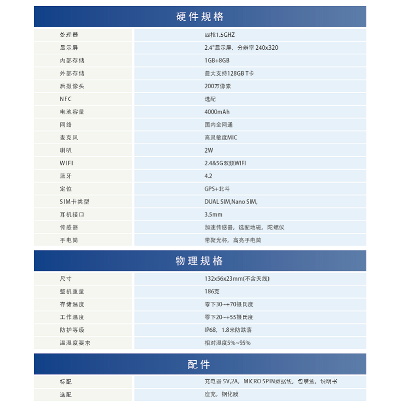 • 四核處理器/高亮手電筒/gps北斗/安卓操作